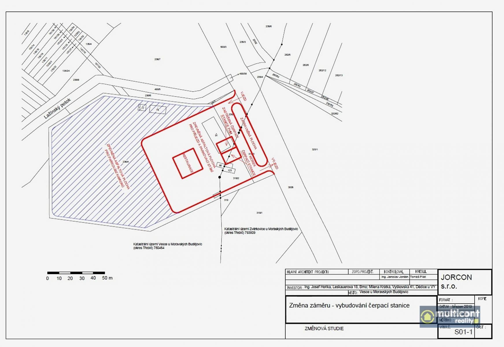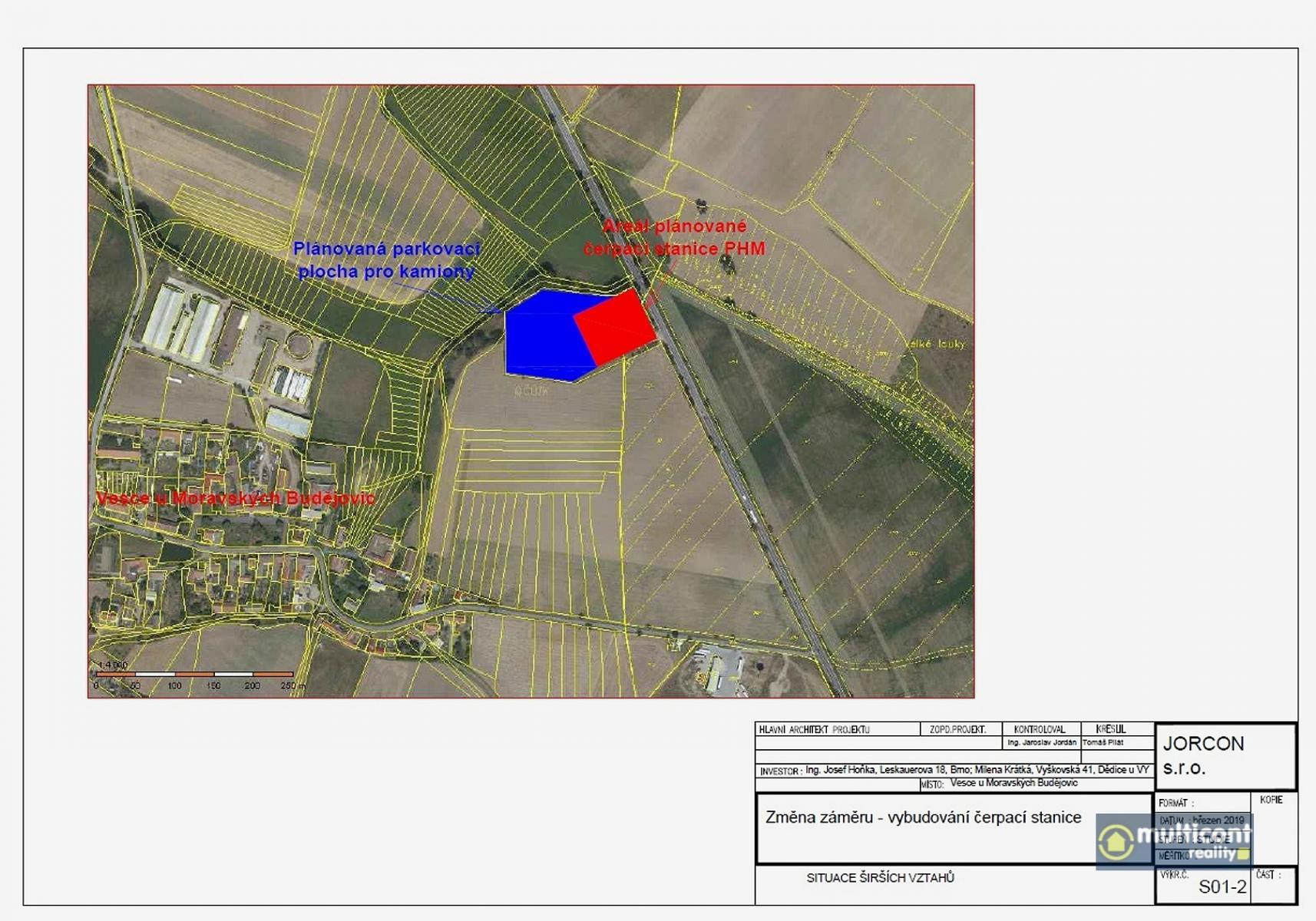 V exkluzivním zastoupení vlastníků si dovolujeme nabídnout pozemek, sousedící se silnicí Jihlava - Znojmo, u Moravských Budějovic, vhodný ke stavbě areálu motorestu, hotelu, čerpací stanice a dalších staveb typu např. Rohlenka. Pozemek se rozprostírá na pozemcích dvou katastrálních území a v minulosti zde byla obalovna, což skýtá výhodu přítomnosti všech inženýrských sítí v naddimenzované podobě, v areálu i samostatný transformátor, je zde možnost vybudování parkoviště pro cca 70 kamionů, tudíž by zde mohla vzniknout i odpočívka, tolik na této trase potřebná. Aktuálně stále v platnosti záměr vybudování čerpací stanice, i se studií, navíc s restaurací a již zmíněným parkovištěm pro kamiony na zpevněné ploše, včetně povolení ŘSD na jimi vybudovaný odbočovací pruh v délce 130 m. Plocha pozemku z větší části zpevněná, zbytky areálu disponují i mostní váhou, zbytkem stavby u ní, oploceno. Více informací podáme vážným zájemcům osobně a kvalifikovaně. Příležitost pro investory, kteří vědí, jaká je dopravní situace na trase Praha-Vídeň a zejména situace v oblasti zaparkování a odstavení vozidel. Nabízíme jim areál, přímo sousedící s touto frekventovanou silnicí, s bohatými možnostmi, jaké pozemek skýtá.